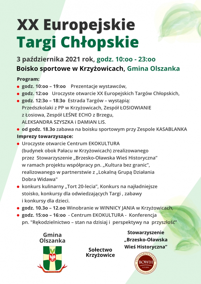 Serdecznie zapraszamy na XX Europejskie Targi Chłopskie w Krzyżowicach oraz uroczyste otwarcie Centrum Ekokultura.