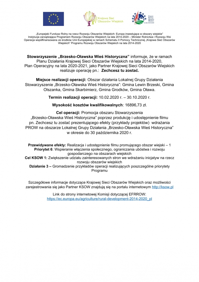 Strona internetowa współfinansowana jest ze środków Unii Europejskiej w ramach działania 19. Wsparcie dla rozwoju lokalnego w ramach inicjatywy LEADER, poddziałania 19.1 Wsparcie przygotowawcze Programu Rozwoju Obszarów Wiejskich na lata 2014-2020.